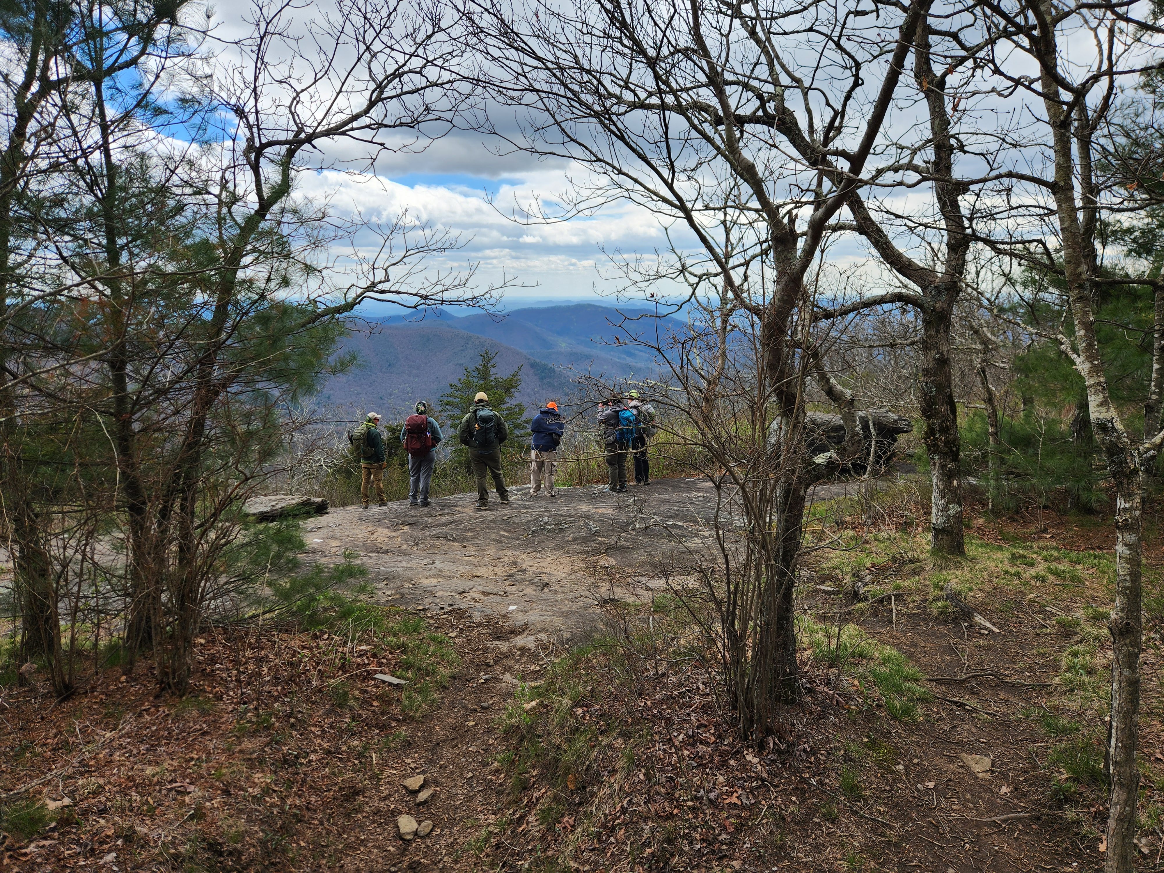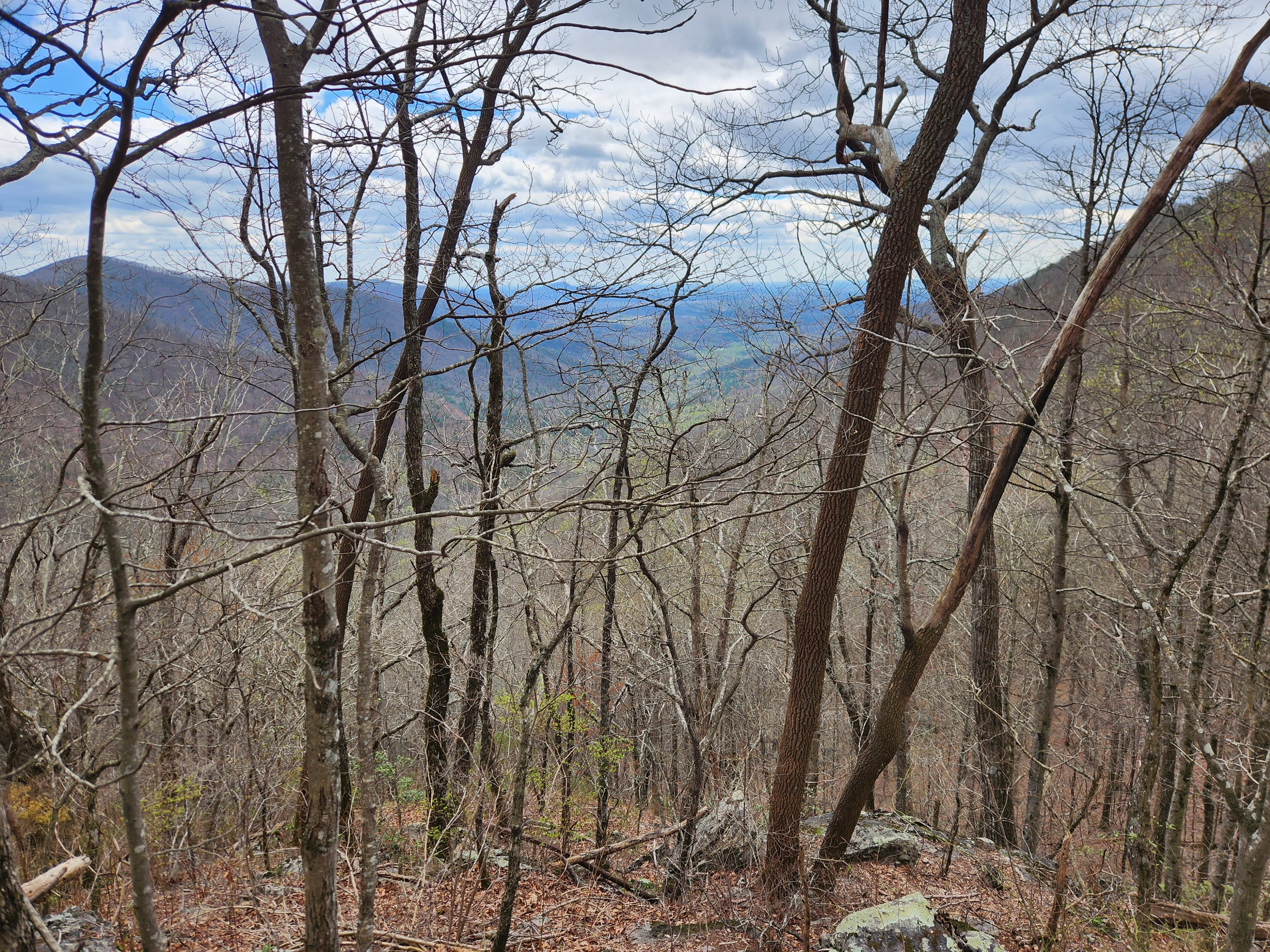 The Appalachian Trail. I’ve been enjoying the trail for a while now. It’s only about an hour away and has many good spots to get on it in Georgia. These photos were taken when I hiked from Tesnatee Gap to the campsite at Wolf Laurel Top. It is a 5.2 mile out and back hike. I wasn’t in a rush and enjoyed seeing the thru hikers working their way to Maine. Coming over Wolf Laurel Top was beautiful on this partly cloudy and windy day where flurries were falling sporadically. It shared this view with me.